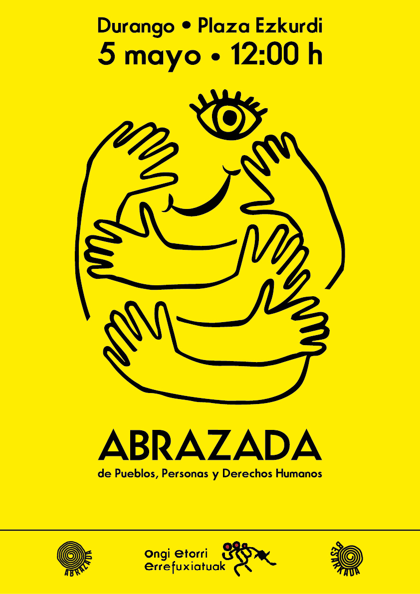 El 5 de mayo a las 12.00 h., cuatro columnas partirán desde la plaza Ezkurdi, Durango, y recorrerán las calles del centro hasta Landako Gunea, donde todas las personas realizaremos una multitudinaria “abrazada” por el derecho a emigrar y a vivir con dignidad.