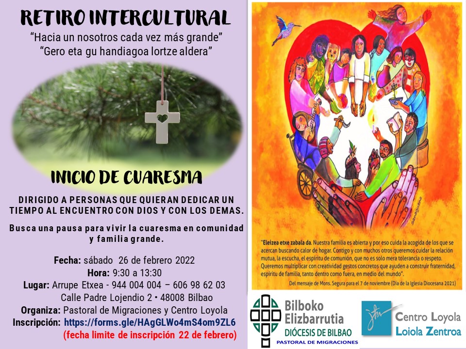 - Retiro intercultural de inicio de Cuaresma organizado en colaboración con la Pastoral de Migraciones de la Diócesis de Bizkaia y el Centro Loyola. Ver cartel adjunto