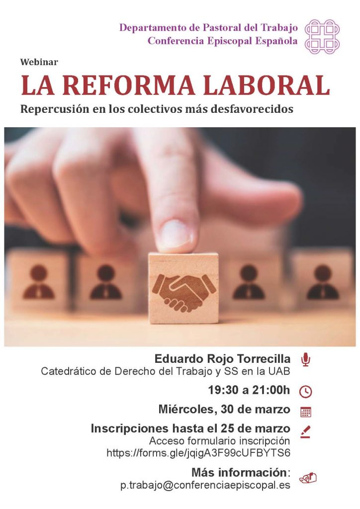 El Departamento de Pastoral del Trabajo ha creído conveniente programar esta webinar para conocer y profundizar en la actual reforma laboral fruto de la recuperación del dialogo social. Para ello contamos con D. Eduardo Rojo Torrecilla, Catedrático de Derecho del Trabajo y Seguridad Social en la Universidad Autónoma de Barcelona (UAB).