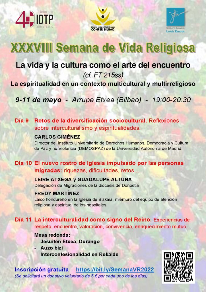 Mas información en folleto adjunto y en el siguiente enlace: https://www.centroloyola.org/bilbao/xxxviii-semana-de-vida-religiosa/