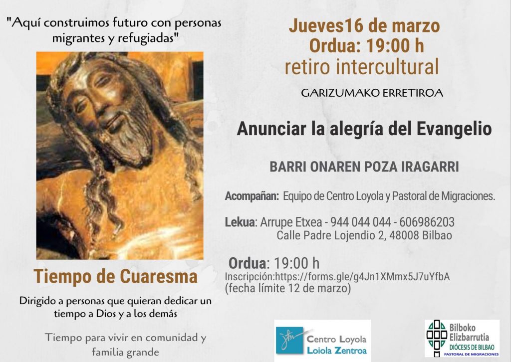 - Retiro intercultural de cuaresma– un espacio comunitario para la oración y el encuentro en diversidad. Ver cartel anexo