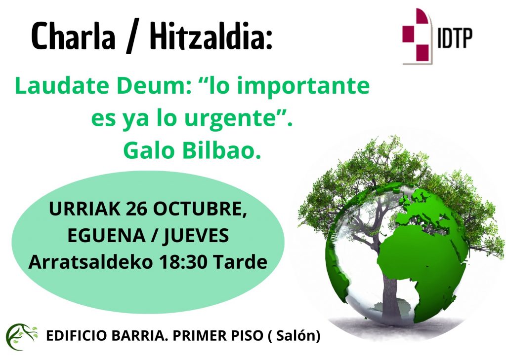 IDPTtik Laudate Deum izeneko hitzaldira gonbidatzen zaituztegu: garrantzitsuena premiazkoa dena eta Galo Bilbaok emango duena da.