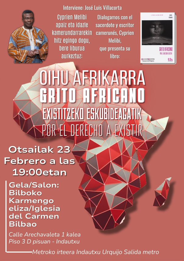 Os invitamos a participar en la presentación del libro “Grito africano, por el derecho a existir” del sacerdote y escritor camerunés Cyprien Melibi, actualmente párroco en Laguardia, Rioja alavesa.
