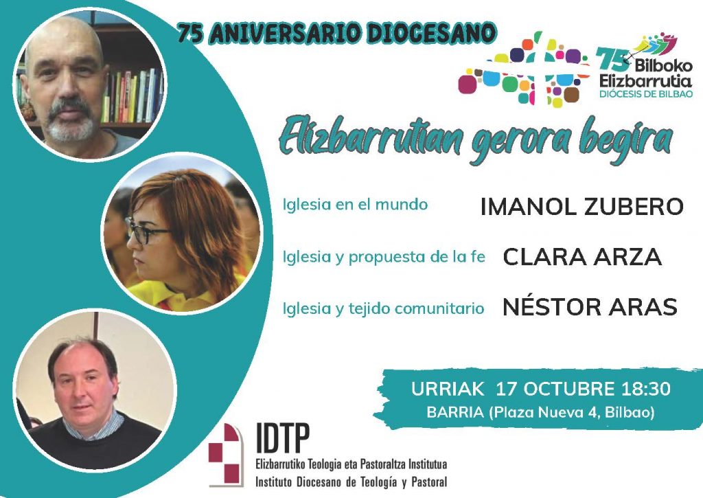 Memoria egiteko eta gure historiari balioa emoteko garaia da, baina, batez be, ikasitakotik aurrera begiratzeko garaia. Horregaitik, hiru persona izango doguz gure eleizaren errealidadea aztertzeko, hiru alderditatik abiauta: gizartean presentzia eta parte-hartzea, fedearen proposamena eta dimentsino komunitarioa. Hirurak kristinau alkarteko kide aski ezagunak dira, ibilpide eta begiradagaz ekarpen aberasgarria egin ahal izateko.