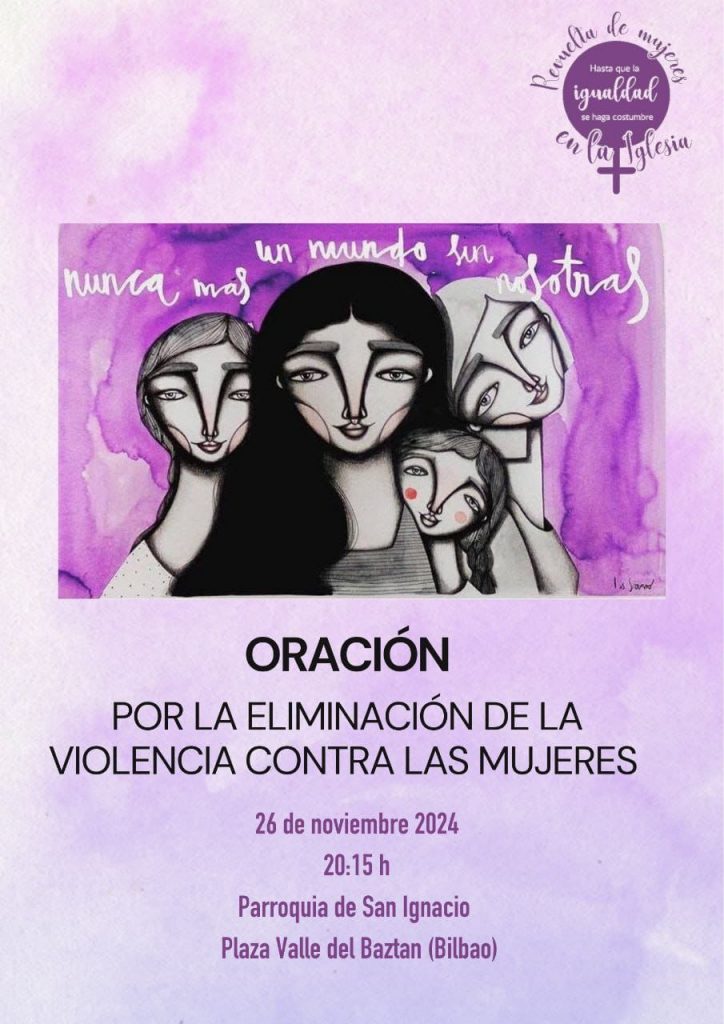 Os invitamos a participar en la oración por la eliminación de la violencia contra las mujeres que se celebrará el día 26 de noviembre a las 20:15 horas en la parroquia de San Ignacio en la Plaza Valle del Baztan (Bilbao)