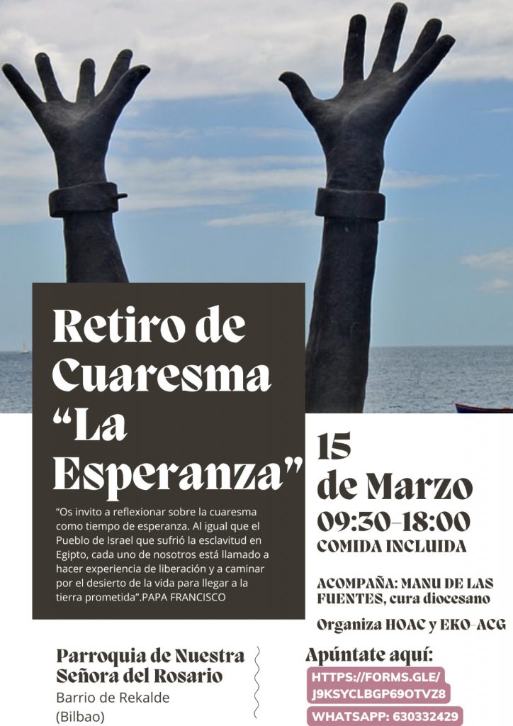 Os invitamos a participar en el Retiro de Cuaresma : “La esperanza” el 15 de marzo, 9:30 a 18:00h en la Iglesia Nuestra Señora del Rosario (Rekalde)
