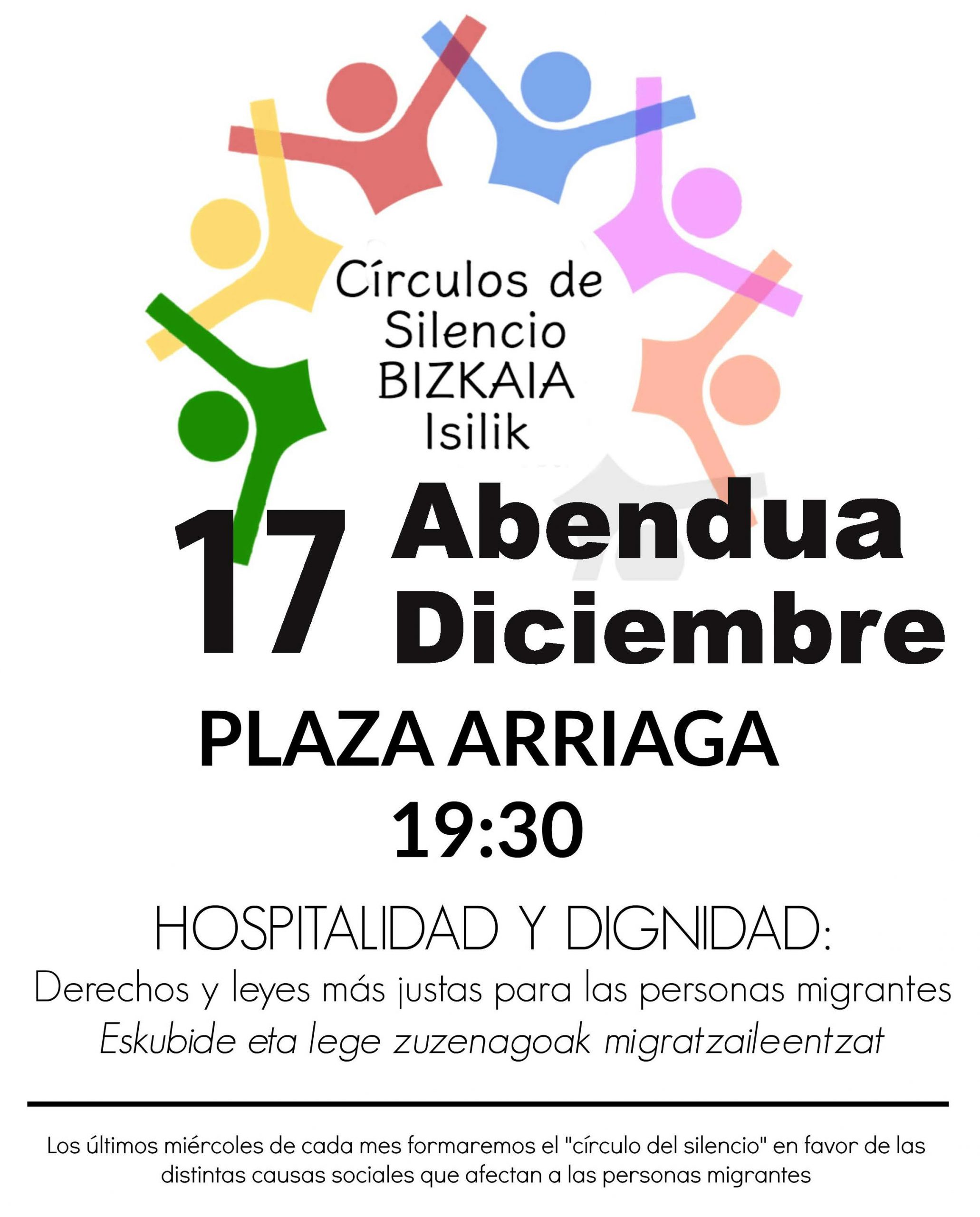 En los “Círculos de Silencio” de este mes se recordará especialmente el día internacional de los Derechos Humanos y de las personas migradas. ver cartel anexo